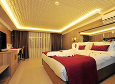 | All superior rooms are designed for your luxury and comfort with complimentary wireless internet access, situated between 1th and 5th floors. | All superior rooms are designed for your luxury and comfort with complimentary wireless internet Access, situated on 5th floor. Two of the superior rooms on 5th floor are especially designed for our disabled guests. | All of our 10 deluxe rooms are located on 6th floor. Large rooms are great when travelling with younger kids. Our spacious rooms have a king sized bed and a single bed which we recommend for families up to 2 adults & 1 child or 3 adults. | All of our 4 corner suites are located on 6th floor. Corner suites are over 100 m² and consists of a bedroom with a private bathroom, A living room and a terrace with a nice view of Uşak. |